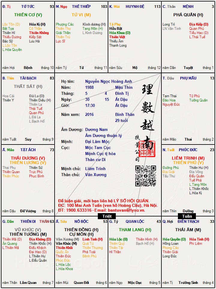kính mong diễn đàn xem hộ cháu lá số này ạ !. xem hộ cháu năm 2016 công liệu cháu có 1 công việc làm ổn định ko ạ . số cháu học hành thì rang rở công việc thì làm hay bỏ bê . và những vận hạn cần lưu ý quan trong nhất trong lá số của cháu ạ.