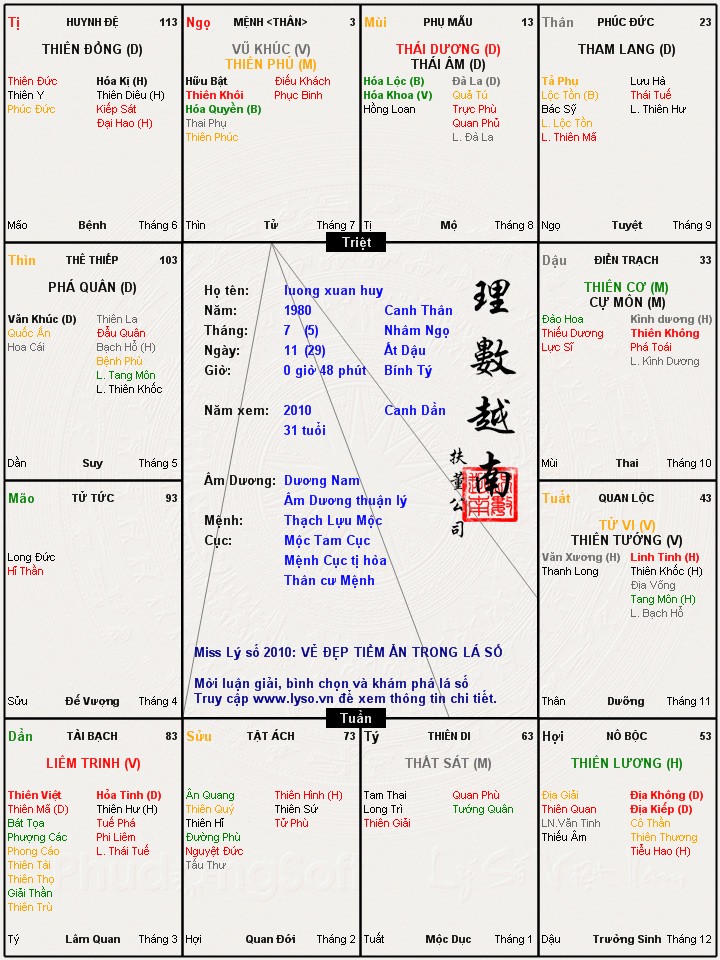 Nhờ Phong Kiếm Xuân Thu luận giải lá số giúp :