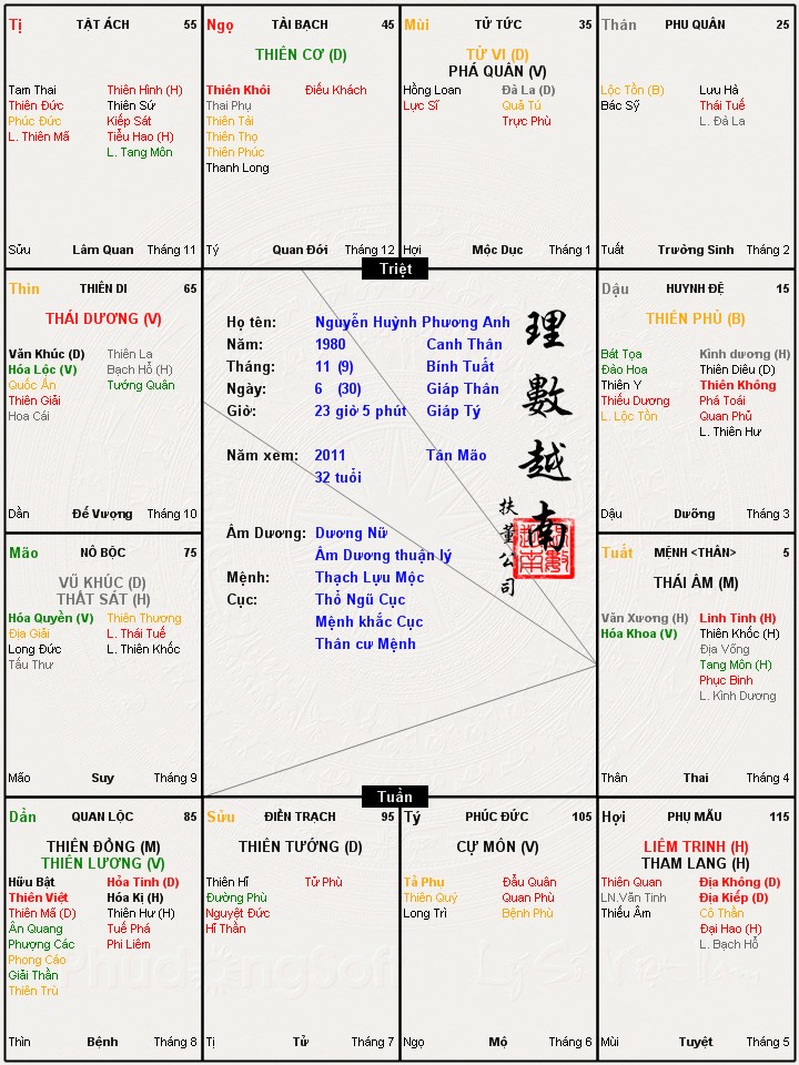 em tên Nguyễn Huỳnh Phương Anh sanh ngày 06/11/1980(dương lịch) - lúc 23giờ 5phút.thanks các bác