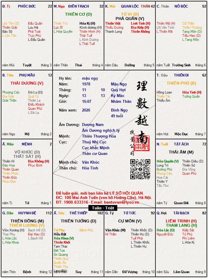 Em ko up được hình , nhờ các bác xem cho em lá số này với ạ : 13-11-1978 - 16:07