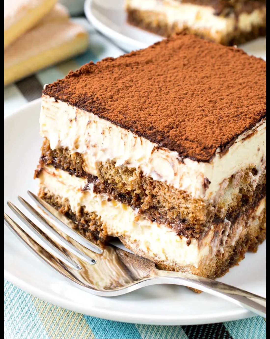 Miếng bánh tiramisu( hình mạng) không có khiếu chụp hình.