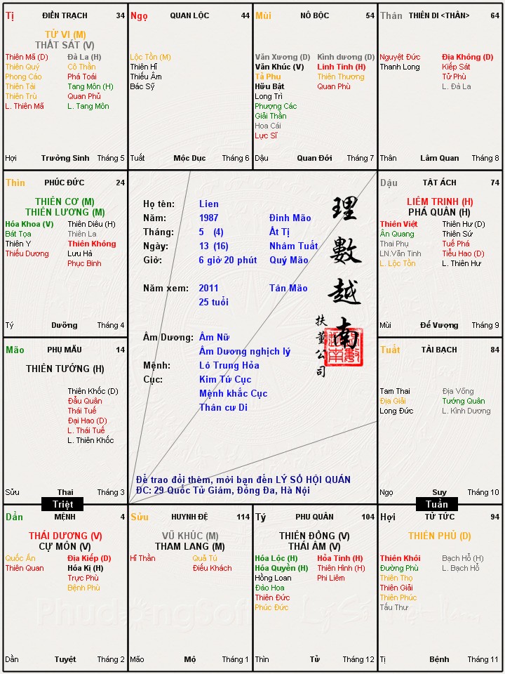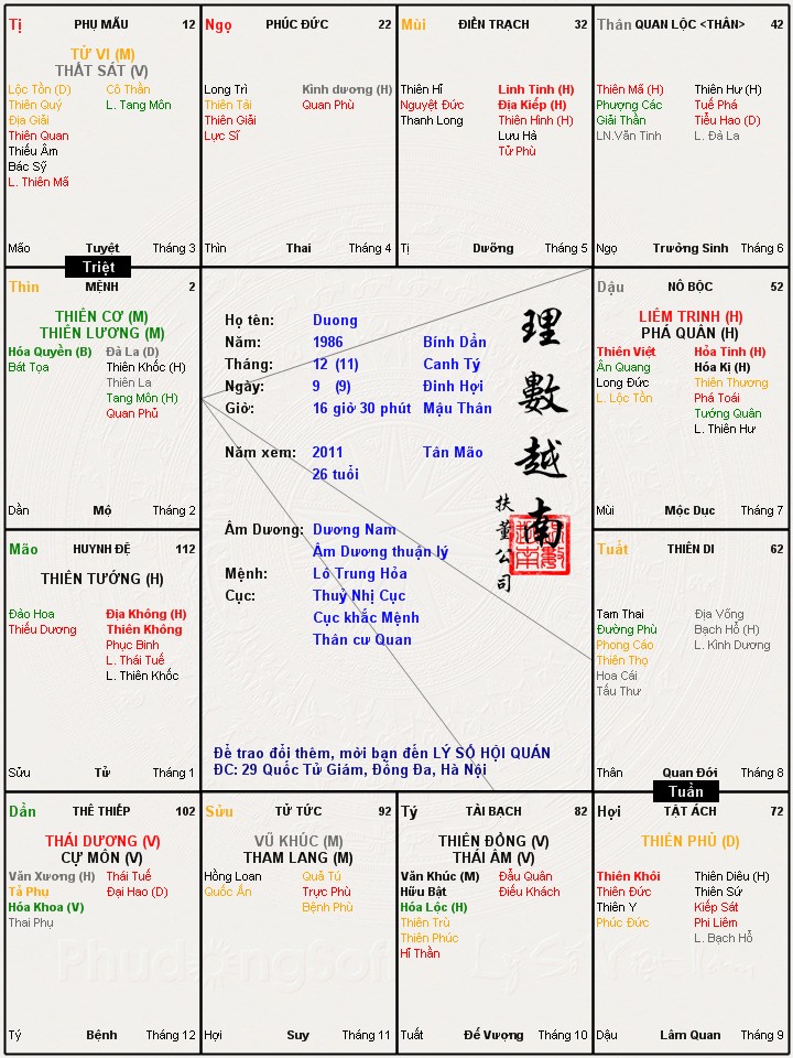 Đây là chuyên mục dành cho việc xem lá số tử vi. Các bài mang tính trao đổi học thuật xin vui lòng đăng trong mục Kiến thức tử vi.