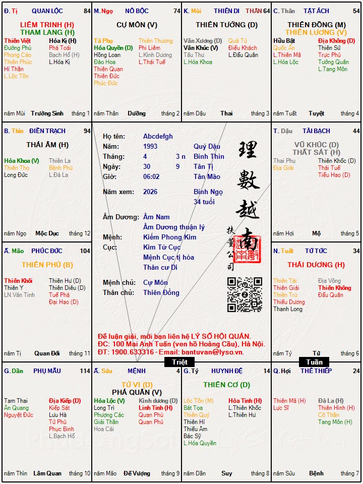 E dùng đt nên chỉ có đường link lá số thôi !hysshu đã viết: 23:37, 12/02/22Em up hộ lá số chủ topic: nam giới sinh ngày 30/4 dương năm 1993; giờ Mão. Anh dùng điện thoại nên ko up được.