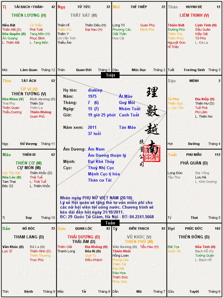 Đây là chuyên mục dành cho việc xem lá số tử vi. Các bài mang tính trao đổi học thuật xin vui lòng đăng trong mục Kiến thức tử vi.