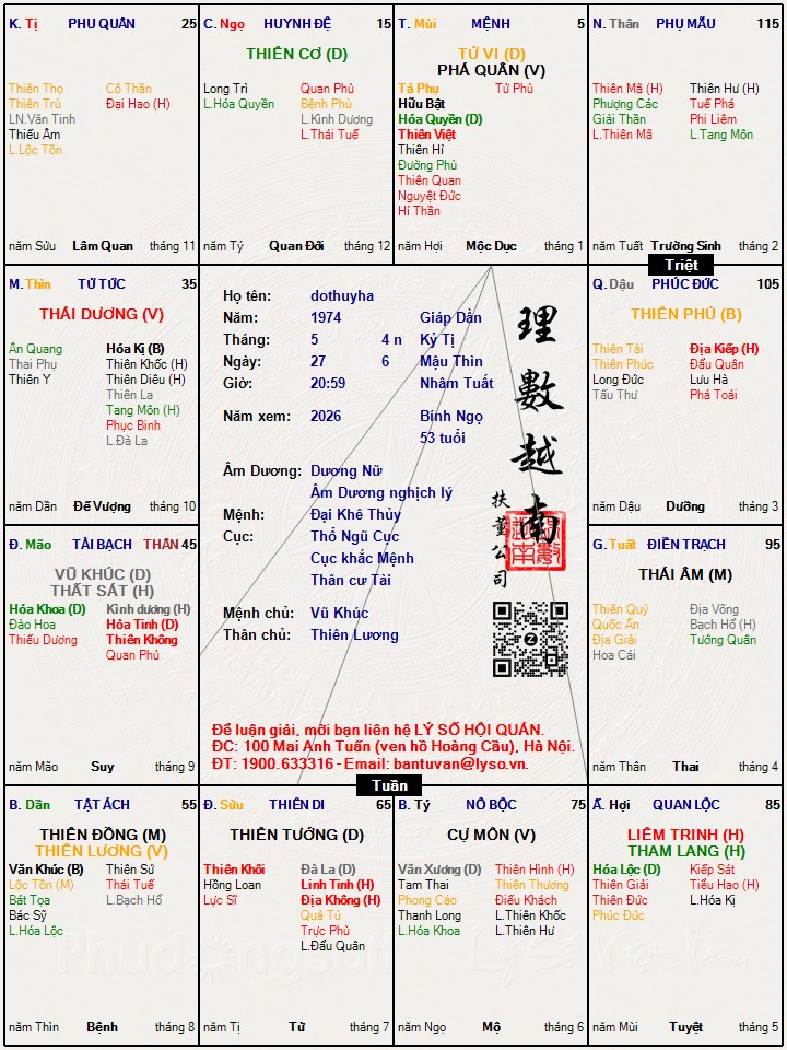 Kính thầy luận giùm lá số, công việc và tình cảm từ giờ đến cuối năm. Đương số có ý định lập nghiệp xa liệu có thuận hay không thầy. xin hỏi thầy liệu đương số có "tập 2" không thầy.