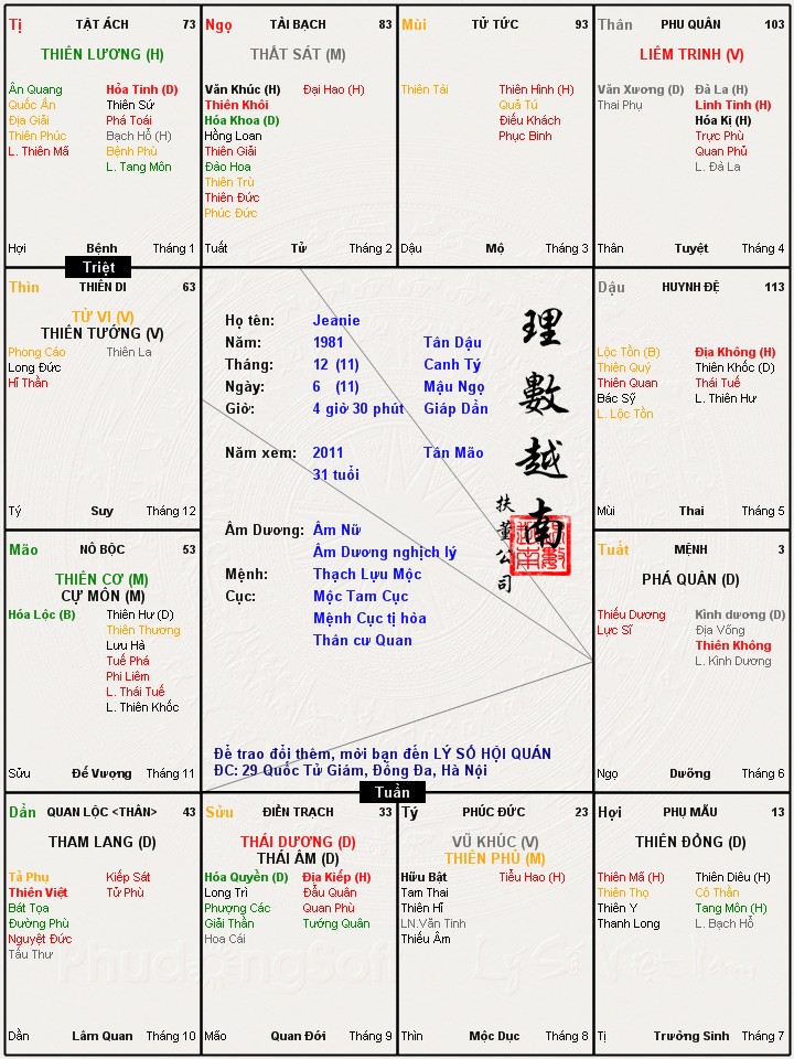 Đây là chuyên mục dành cho việc xem lá số tử vi. Các bài mang tính trao đổi học thuật xin vui lòng đăng trong mục Kiến thức tử vi.