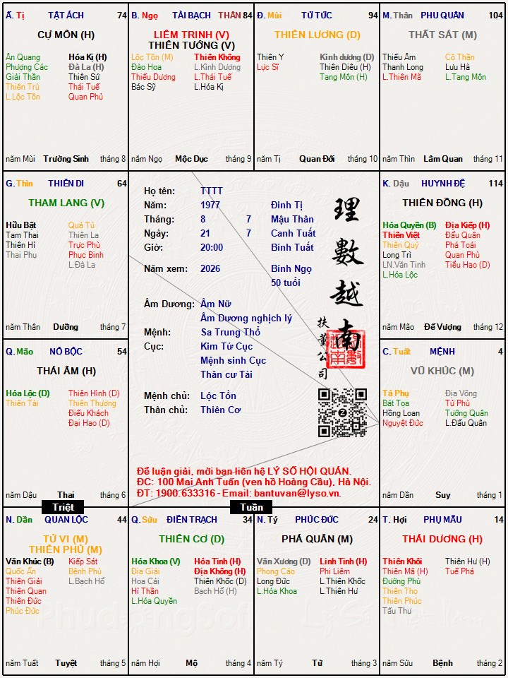 Đây là lá số của chị gái mình. Nhờ các anh/chị trên diễn đàn xem dùm măm nay có nên chuyển công việc không?