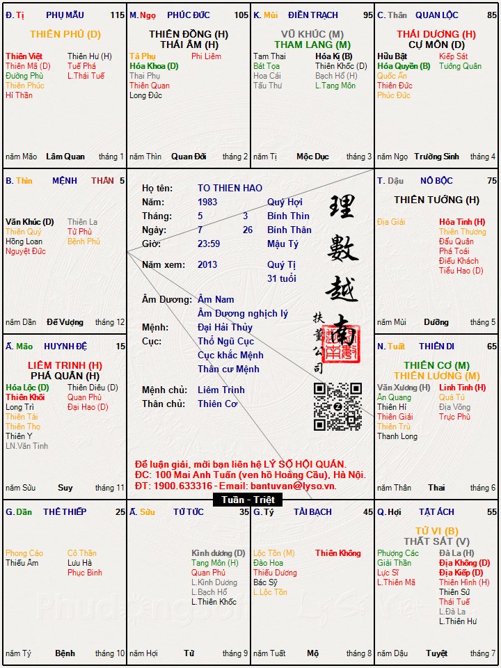 Đây là chuyên mục dành cho việc xem lá số tử vi. Các bài mang tính trao đổi học thuật xin vui lòng đăng trong mục Kiến thức tử vi.