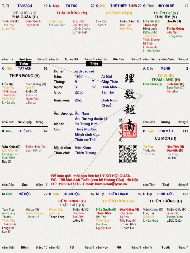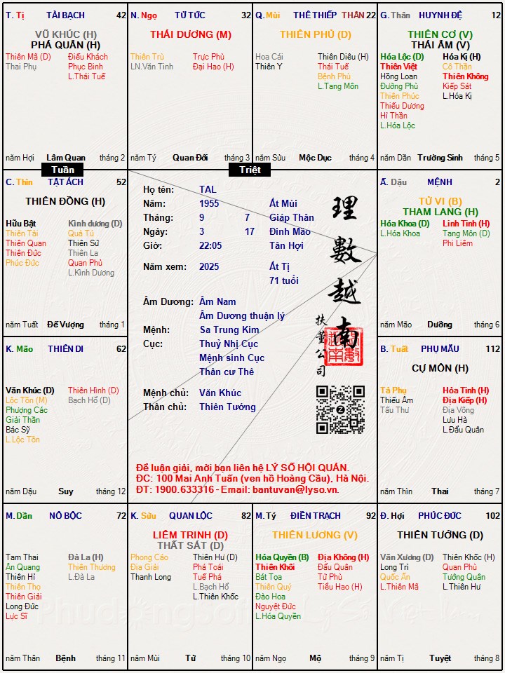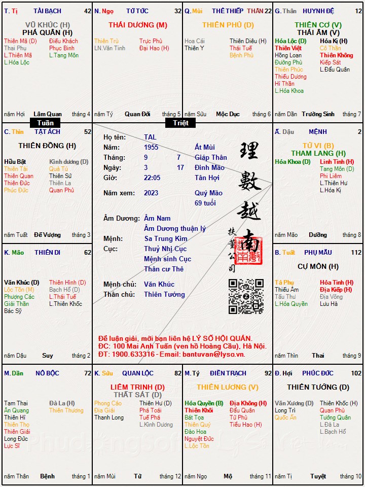 ngay, thang, gio sinh am lich : ngay 17 thang 7 At Mui, gio Hoi (22.05) o Saigon