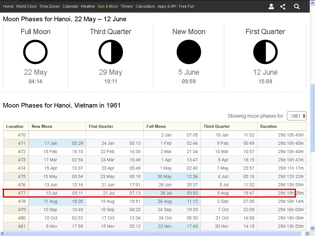 ĐỗVạnThông đã viết:Chúng ta thấy ngày 12/7/1961 là ngày bắt đầu tuần trăng mới ở Hawaii USA, trong khi ở Viet Nam tuần trăng mới bắt đầu vào ngày 13/7.