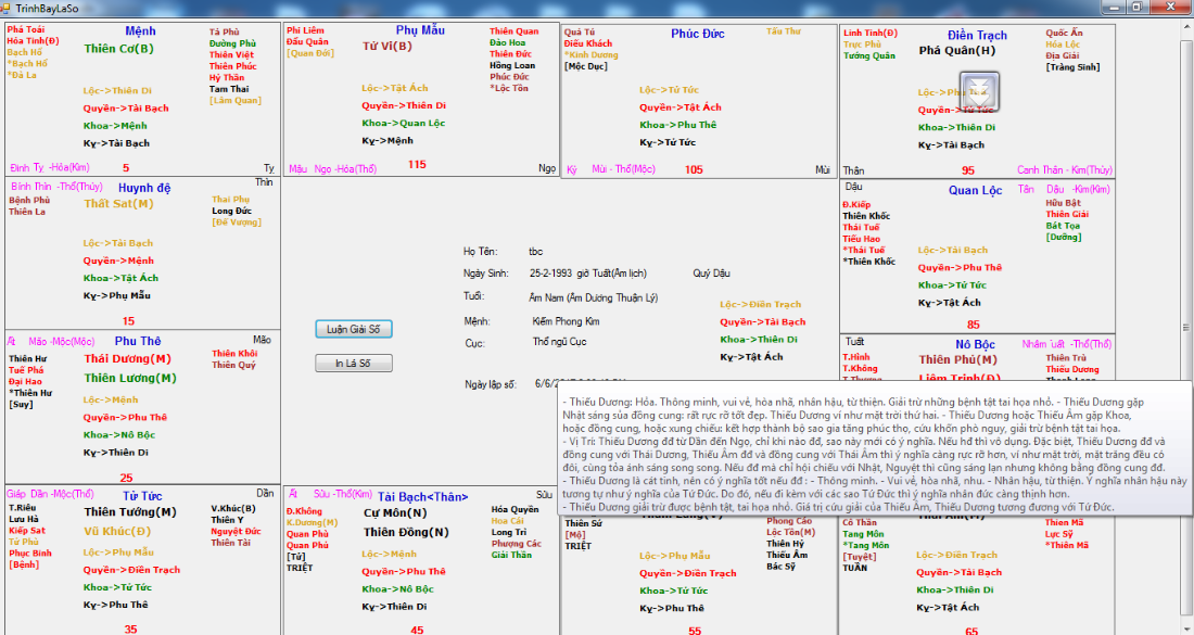 TL: Phần mềm luận giải tử vi Nam Bắc Phái - miễn phí