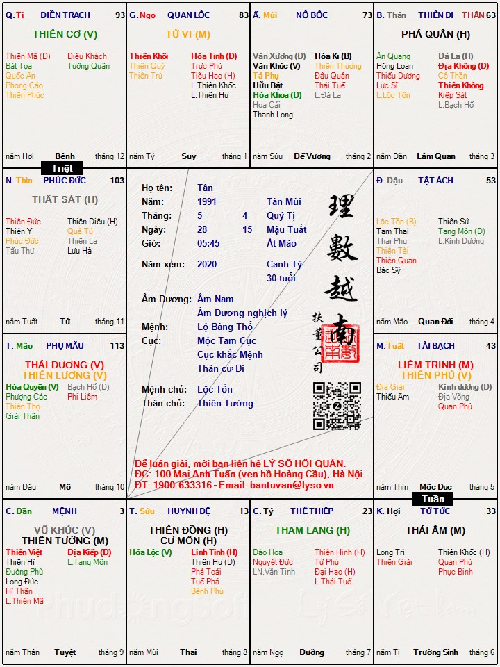 Dạ cháu thân hình cao vừa tầm hình thức tạm được và có vẻ trẻ hơn so với cùng tuổi. Đã học xong bằng cử nhân. Bố đã mất 2015. Mẹ hay bệnh. Đang nuôi em đi hoc. Từng đi làm công ăn lương nhưng cảm thấy không phù hợp nên chuyển sang làm kinh doanh và làm rất nhiều ngành nghề nhưng lợi nhuận nhiều nhất hiện trong ngành In. Cháu Cảm thấy cuộc sống rất là khổ tâm. Tiền cũng kiếm được nhưng chi việc này việc kia cũng đi hết nên chưa tiết kiệm được. Tình duyên cháu thì khá buồn. Cháu xin bác chỉ dẫn hạn 2020? Và đại hạn 33-43 có thể giúp cháu phát huy được hết khả năng không ạ? Cháu nghe nói đại hạn này tốt nhưng gặp tuần có giảm sự tốt nhiều không ạ? Cháu có thể kinh doanh thêm ngành BĐS được không ạ?