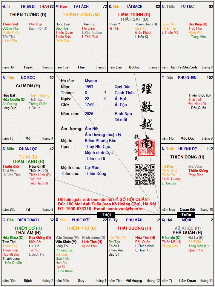Rất cảm ơn ai có thể xem giúp em lá số tử vi này ạ !