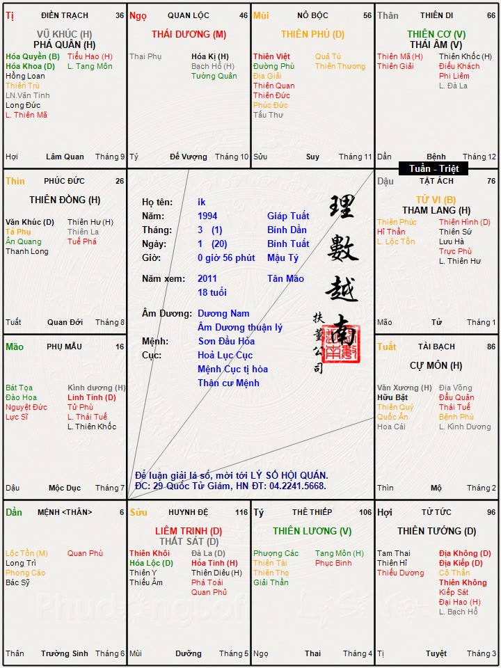 Đây là chuyên mục dành cho việc xem lá số tử vi. Các bài mang tính trao đổi học thuật xin vui lòng đăng trong mục Kiến thức tử vi.
