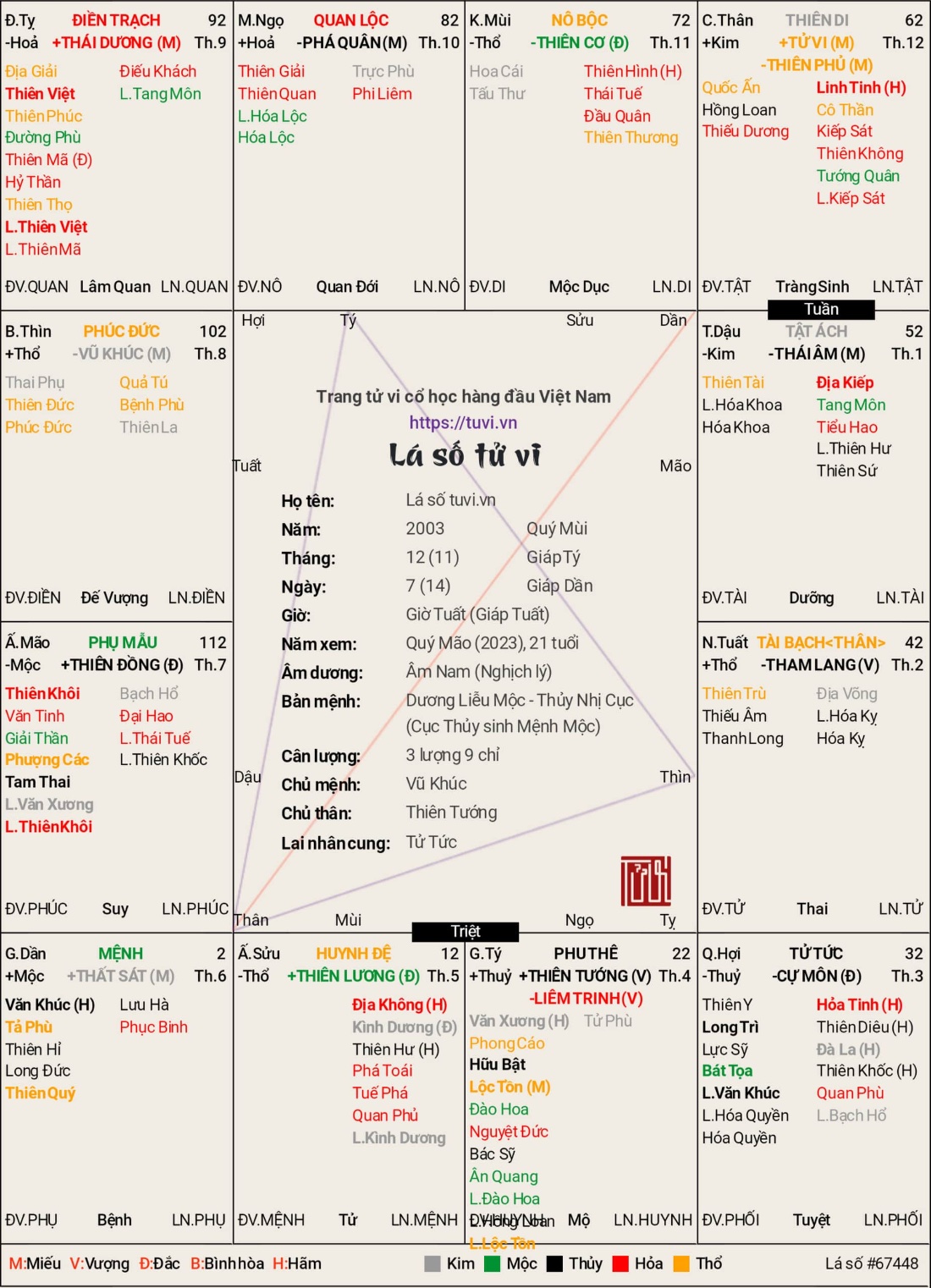 Ko có khái niệm sau 30 gỡ dc triệt , mà giai đoạn sau 30+ chỉ mang tính giảm bớt ảnh hưởng của triệt .chuquyen12 đã viết: 02:16, 01/09/23 Trong lá số này của cháu cung Thiên di dính tuần án ngữ