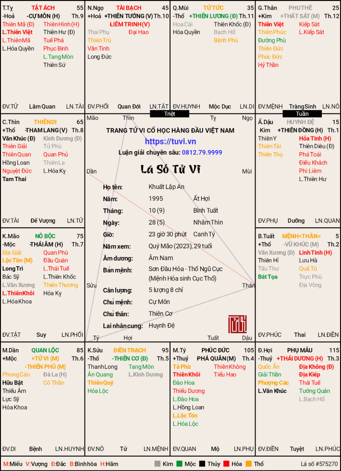 Năm 2024 nhập Di và Quan , thì sẽ có chuyển biến trong cv .khuatlapan đã viết: 09:22, 28/12/23 Em sinh 23:30 ngày 28/10 dương, lập lá số ở các trang có trang tính là ngày 5 âm có trang lại tính ngày 6, các thầy cho em hỏi lá nào mới đúng lá em ạ? Em để 2 lá ở dưới.