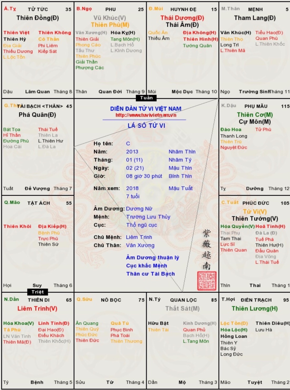 Đây là chuyên mục dành cho việc xem lá số tử vi. Các bài mang tính trao đổi học thuật xin vui lòng đăng trong mục Kiến thức tử vi.