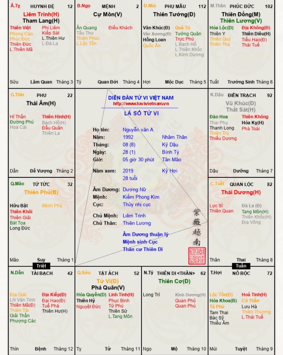 Đây là chuyên mục dành cho việc xem lá số tử vi. Các bài mang tính trao đổi học thuật xin vui lòng đăng trong mục Kiến thức tử vi.