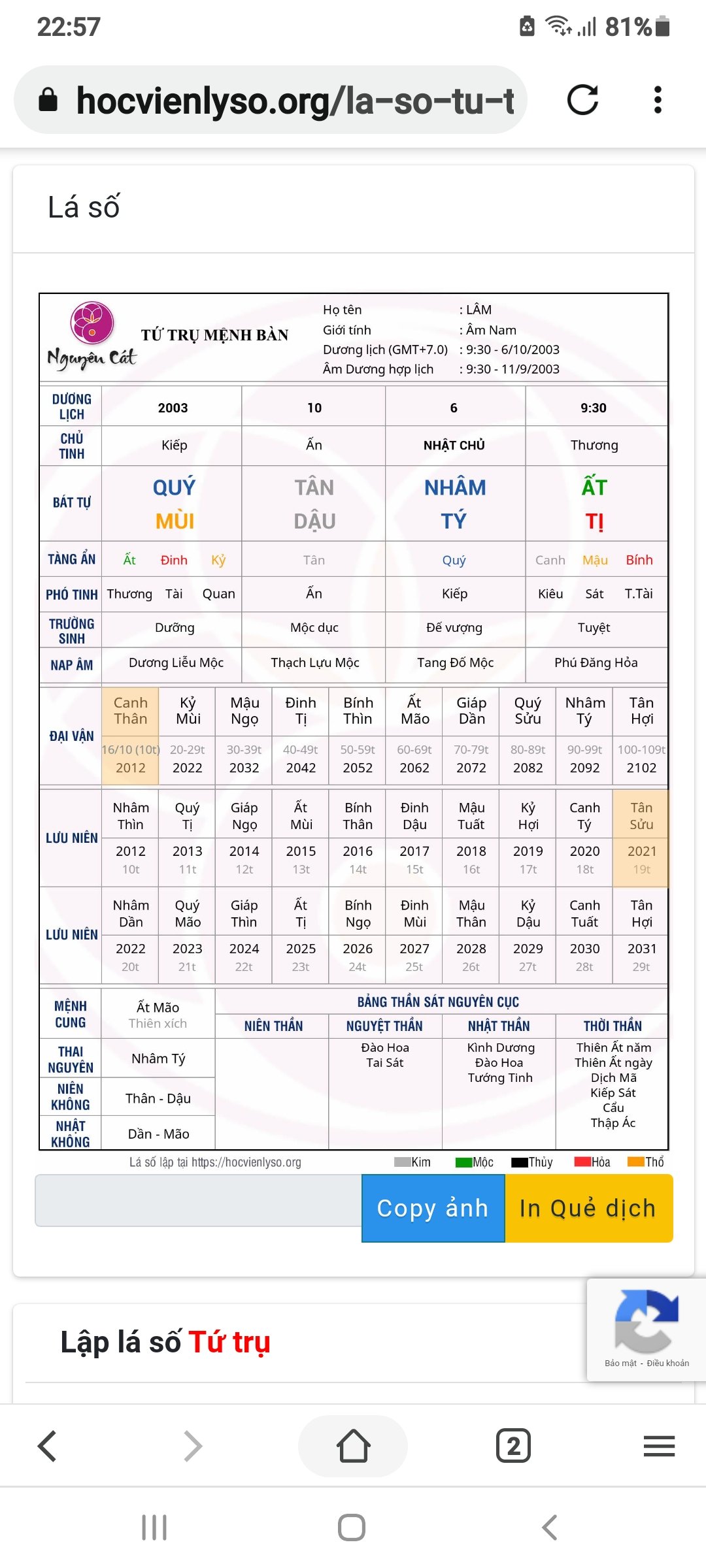 Vâng. Em gửi anhLão Bản QN đã viết: 20:27, 26/12/21E là nam hay nữ , a thấy tứ trụ là nam mệnh , e lấy lá diễn đàn đi !Hutieu12 đã viết: 22:57, 25/12/21Lão Bản QN đã viết: 22:43, 25/12/21