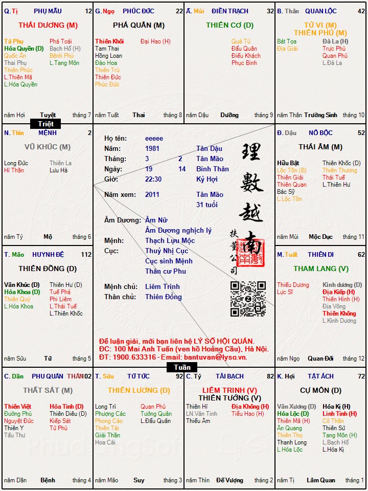 Đây là chuyên mục dành cho việc xem lá số tử vi. Các bài mang tính trao đổi học thuật xin vui lòng đăng trong mục Kiến thức tử vi.