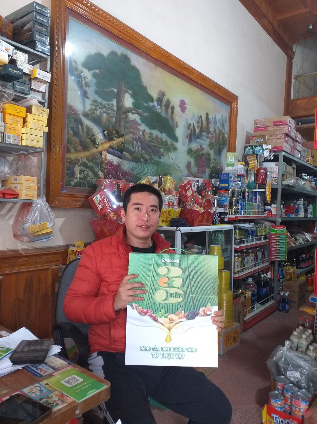 Ps: món quà này là nhờ các khách hàng mua hàng nhà mình mà mình được vinasoy tặng. ( hầu hết mình giữ lại hoặc bán rẻ nhưng cũng có 1 vài lần mình lại dùng để tặng khách hàng )