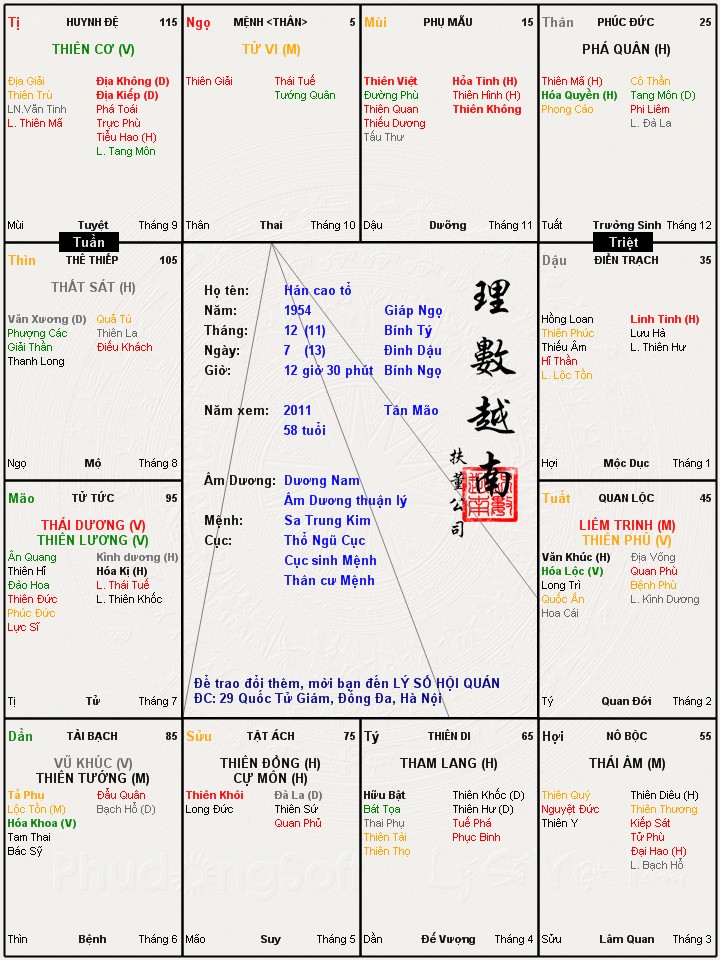 Đây là chuyên mục dành cho việc xem lá số tử vi. Các bài mang tính trao đổi học thuật xin vui lòng đăng trong mục