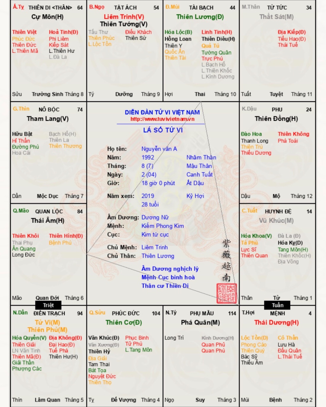 Đây là chuyên mục dành cho việc xem lá số tử vi. Các bài mang tính trao đổi học thuật xin vui lòng đăng trong mục Kiến thức tử vi.