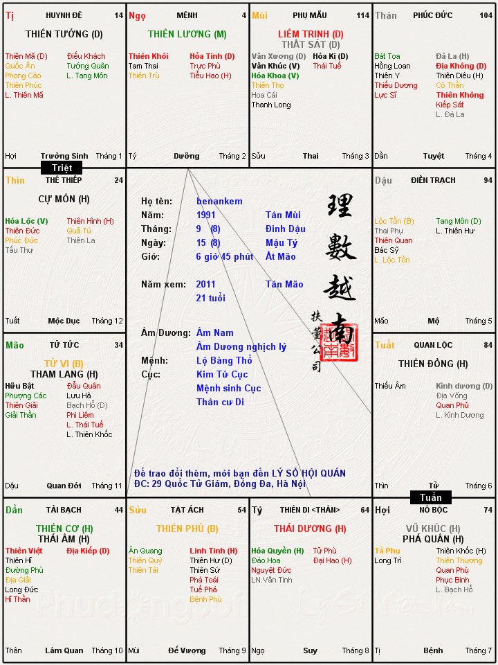 Đây là chuyên mục dành cho việc xem lá số tử vi. Các bài mang tính trao đổi học thuật xin vui lòng đăng trong mục Kiến thức tử vi.
