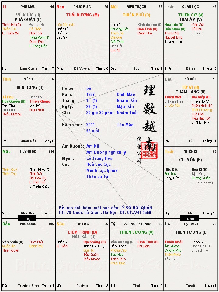 Đây là chuyên mục dành cho việc xem lá số tử vi. Các bài mang tính trao đổi học thuật xin vui lòng đăng trong mục Kiến thức tử vi.