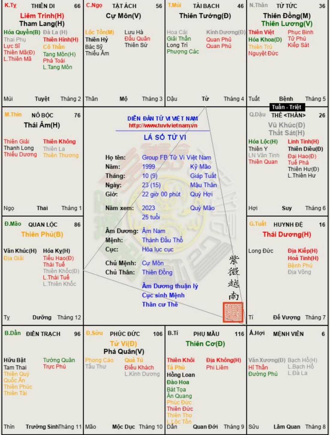 Đây là chuyên mục dành cho việc xem lá số tử vi. Các bài mang tính trao đổi học thuật xin vui lòng đăng trong mục Kiến thức tử vi.