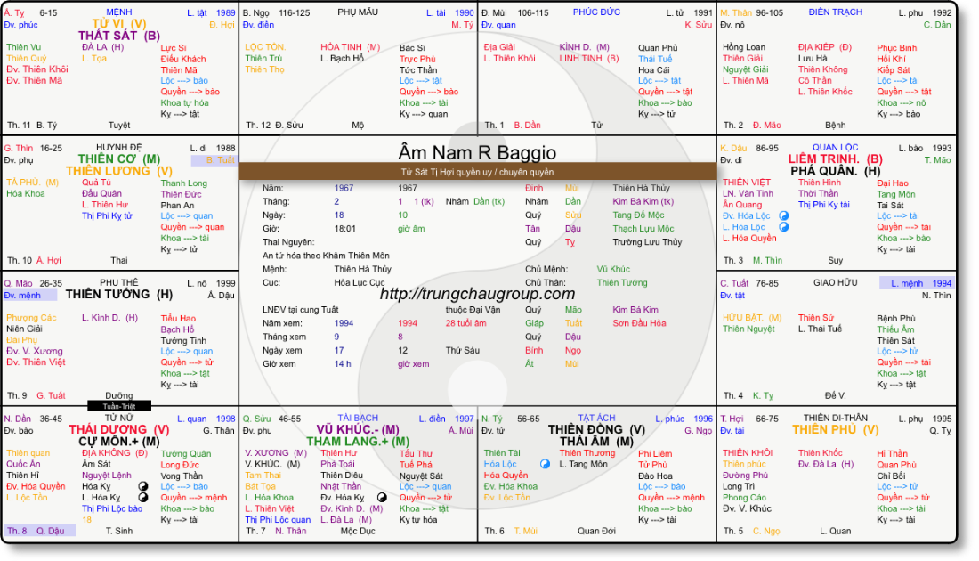 Ví như năm 1985 tại sao lại hung?. Vì năm đó 19t, đại vận ở cung Thìn, lưu niên ở cung Tuất. Đối với người Thân cư Di thì lãnh đủ. Nhất là Lưu Kình tại Thìn...