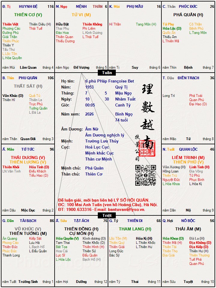 TL: Tỉ phú nữ của Pháp giầu nhất thế giới ( do được thừa kế) mệnh Tử vi cư Ngọ
