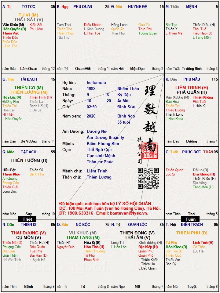 đây là lá số tử vi và tứ trụ của em ạ