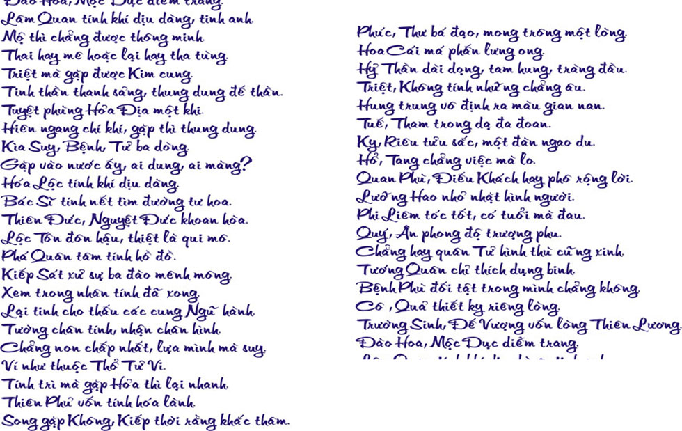 Em cảm ơn thầy Tuệ đã thông Tuệ giúp. Tình hình là em chỉ mới chân ướt chân ráo tìm hiểu các câu phú có liên quan đến lá số của mình chứ chưa được đến bài phú đâu ạtuetvnb đã viết:Phú thì cũng có nhiều kiểu, có nhưng bài phú mang tính bao quát cao, như là những định nghĩa. Nhưng có những bài phú lại chú ý về những tiểu tiết, đúc rút ra từ những lá số điển hình. Do vậy, cần cẩn trongj khi nghiên cứu.