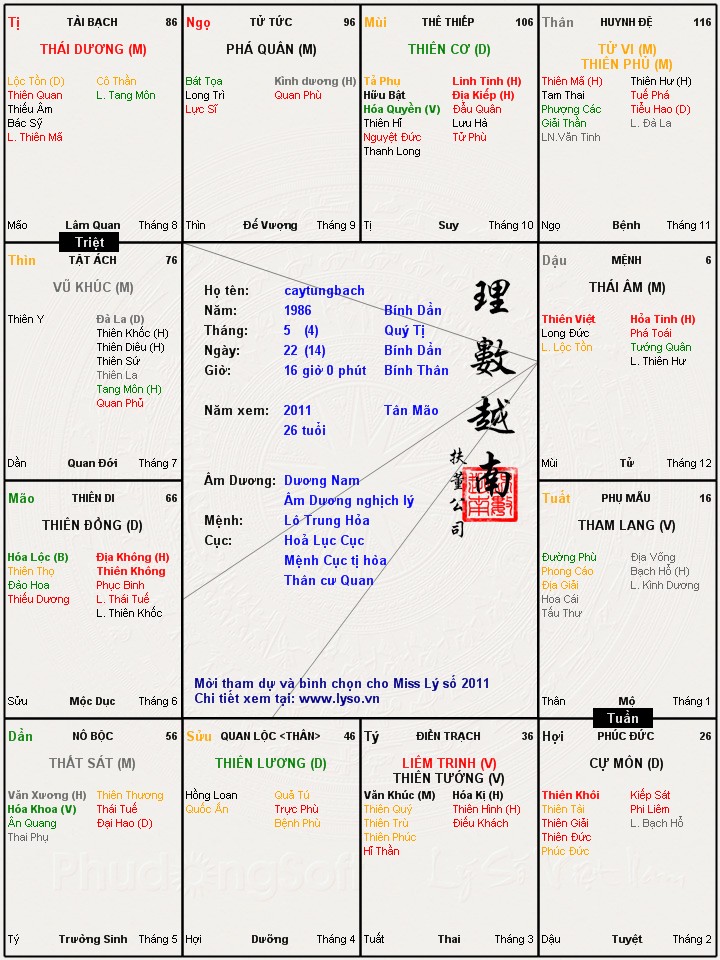 greenfield911 đã viết:xin bác ktsdoanquyet xem dùm ,lá số của em có không ? vì em đi xem bói nói co quý nhân là vong ng phụ n theo phù hộ ,em không biết thế nào ,xin lỗi khi mình úp lá số lên bài bạn nha ,chủ topic