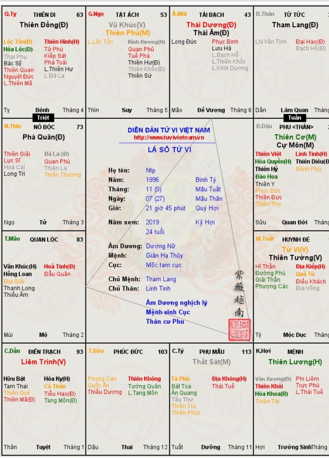[/quote]thienhoanganhca đã viết: 18:13, 13/02/19Chào bạn ngvuthao, mình cũng có lá số tử vi khá tương đồng với bạn, năm ngoái mình may mắn được bác thachcamdang xem qua cung điền trạch cho. Mình xin cop lên đây để bạn xem qua. Có gì quá phận mong bác thachcamdang bỏ qua cho.ngvuthao đã viết: 20:17, 09/02/19 Lâu lâu mới thấy có topic của anh thachcamda g mở, chủ đề cũng hay nữa