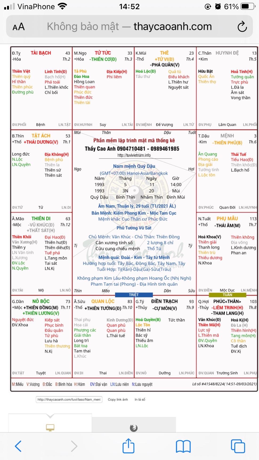 Còn về thông tin lá số sinh thì bố mẹ em nhớ 9:30-10:00 giờ Tỵ, ngày tháng năm chính xác. Vẫn là khung giờ Tỵ. Bấm lá số vẫn giống nhau vậy.