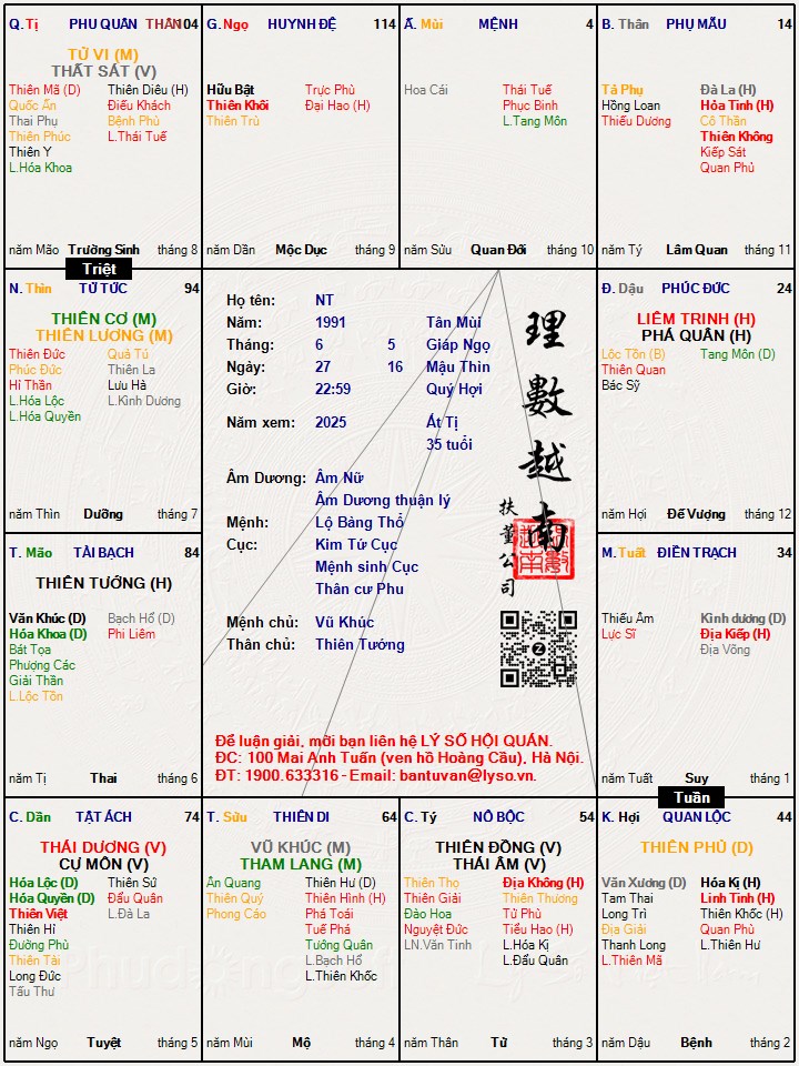 Vâng thưa chú, chị cả của cháu mất năm 1990 vì bệnh. Chị 2 cháu có lá số đã được cô Liên xác nhận là giờ Hợi nên cháu nghĩ là chính xác. Đây là lá số chị 2 cháu: