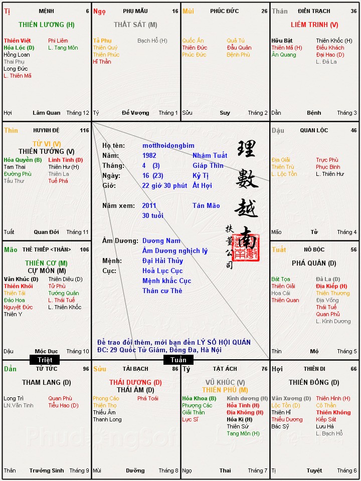 Đây là chuyên mục dành cho việc xem lá số tử vi. Các bài mang tính trao đổi học thuật xin vui lòng đăng trong mục Kiến thức tử vi.
