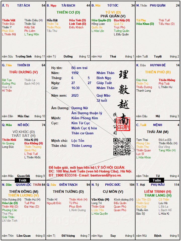 Bạn cho mình vài lời về lá số của em trai mình được không ạ?
