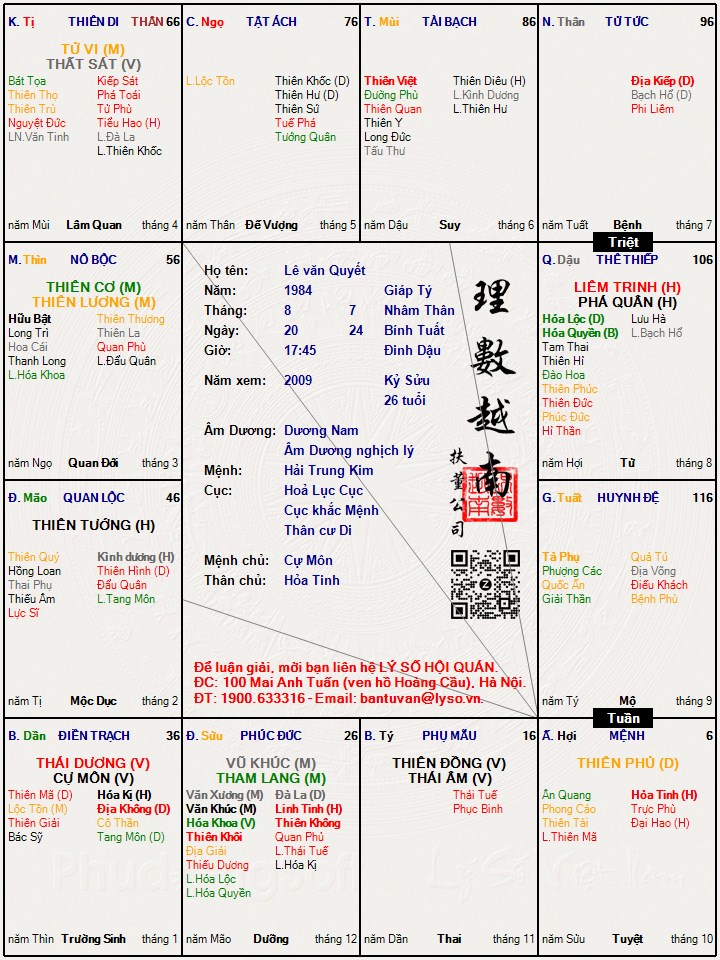 TL: xin các cao nhân luận giải lá số Tử vi dùm e ....
