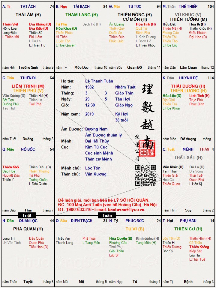 Tuấn rất mong nhận được thêm lý giải về lá số của mình năm 2019 này và 5 năm sau để có định hướng tốt.