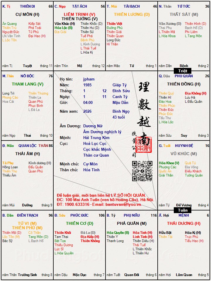Đây là chuyên mục dành cho việc xem lá số tử vi. Các bài mang tính trao đổi học thuật xin vui lòng đăng trong mục Kiến thức tử vi.