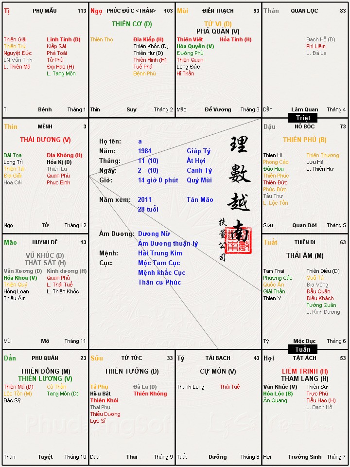 Đây là chuyên mục dành cho việc xem lá số tử vi. Các bài mang tính trao đổi học thuật xin vui lòng đăng trong mục Kiến thức tử vi.